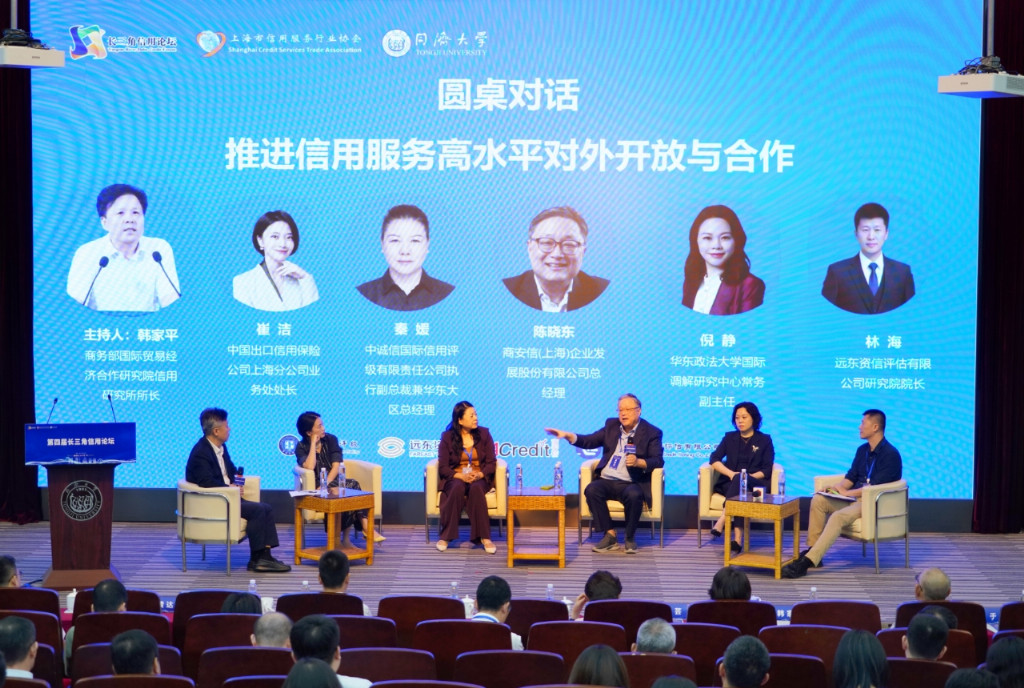 圆桌对话环节更是汇聚多方智慧,由商务部国际贸易经济合作研究院信用研究所所长韩家平主持,还邀请了商安信(上海)企业发展股份有限公司董事长、总经理陈晓东、中国出口信用保险公司上海分公司业务处处长崔洁、中诚信国际信用评级有限责任公司执行副总裁兼华东大区总经理秦媛、华东政法大学国际调解研究中心常务副主任倪静、远东资信研究院院长林海,围绕“推进信用服务高水平对外开放与合作”这一主题,从政策、企业、金融、法律、研究等多维度碰撞思想,形成“推动信用服务对外开放需‘政策引导、市场主导、法律保障、国际合作’协同发力”的共识,为长三角信用服务高水平对外开放提供清晰路径,为信用服务国际化发展贡献策略,碰撞出跨界合作的新火花。